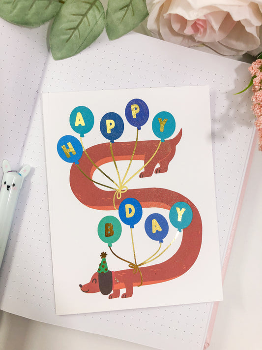 Birthday Balloons Dachschund Greeting Card