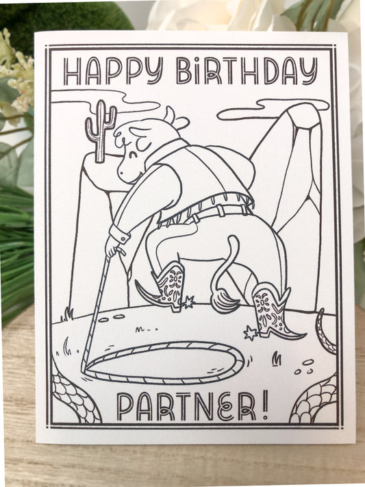 Color-Me-In Cowboy Happy Birthday Partner Greeting Card